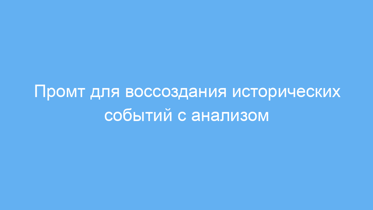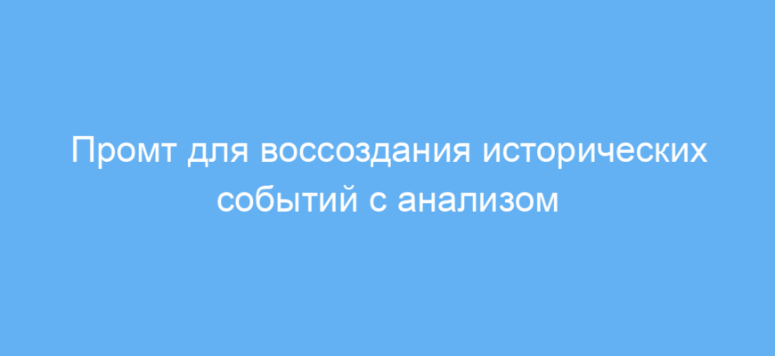 Этот промт экономит время и усилия, позволяя быстро получить развернутое и интересное описание исторических событий с последующим анализом. Вы сможете не просто изучать факты, а глубоко погружаться в контекст, эмоции и последствия, что значительно улучшит понимание и интерес к истории.