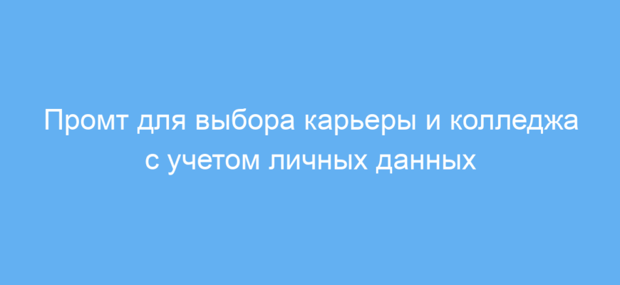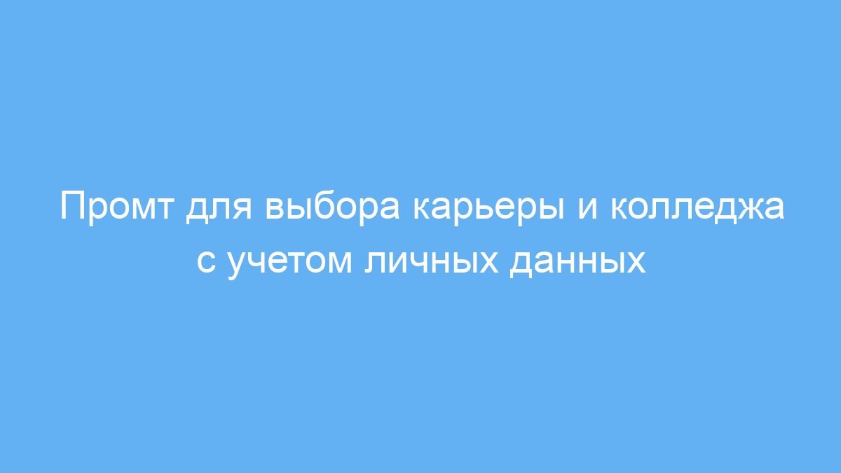 Использование этого промта экономит время и силы при выборе карьеры и профильного колледжа. Он помогает максимально учесть индивидуальные особенности и данные, снизить уровень неопределенности и получить индивидуальную обоснованную рекомендацию от нейросети.