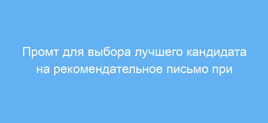 Промт помогает проанализировать характеристики разных кандидатов и выделить того, кто будет идеальным автором рекомендации. Вы задаёте исходные данные о своих отношениях с преподавателями и просите ИИ-консультанта на основе этих данных оценить их потенциальную эффективность в роли рекомендателя. Это экономит время и снижает неопределенность при подготовке документов для поступления.