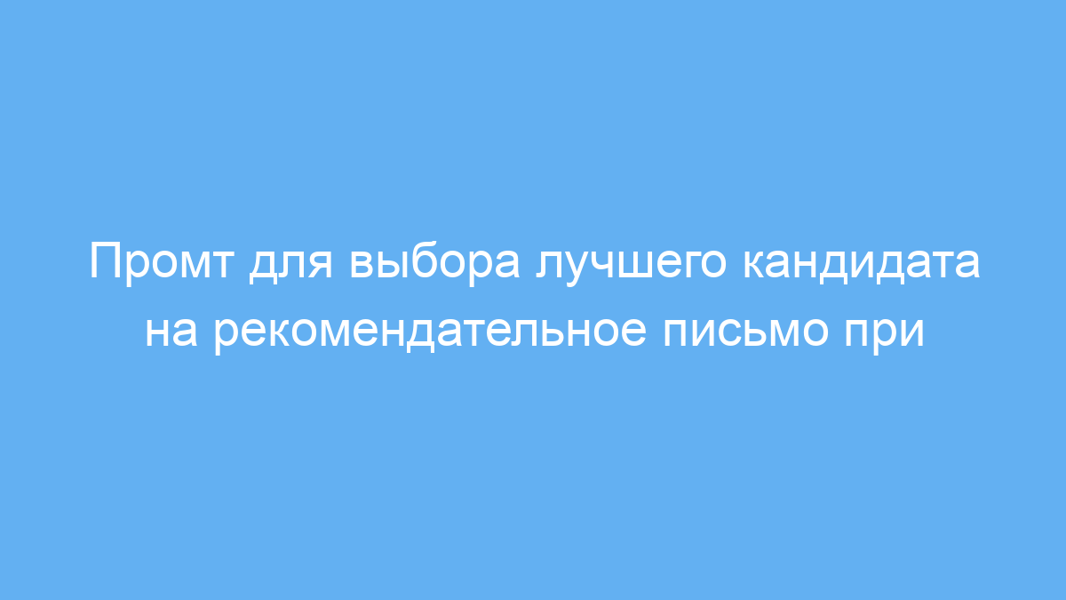 Этот промт позволяет сэкономить время и получить чёткое понимание, кто из ваших знакомых лучше всего подойдет для написания рекомендуемого письма. Он помогает структурировать выбор, учитывая сильные стороны кандидатов и цели поступления, что повышает шансы на успешное зачисление.