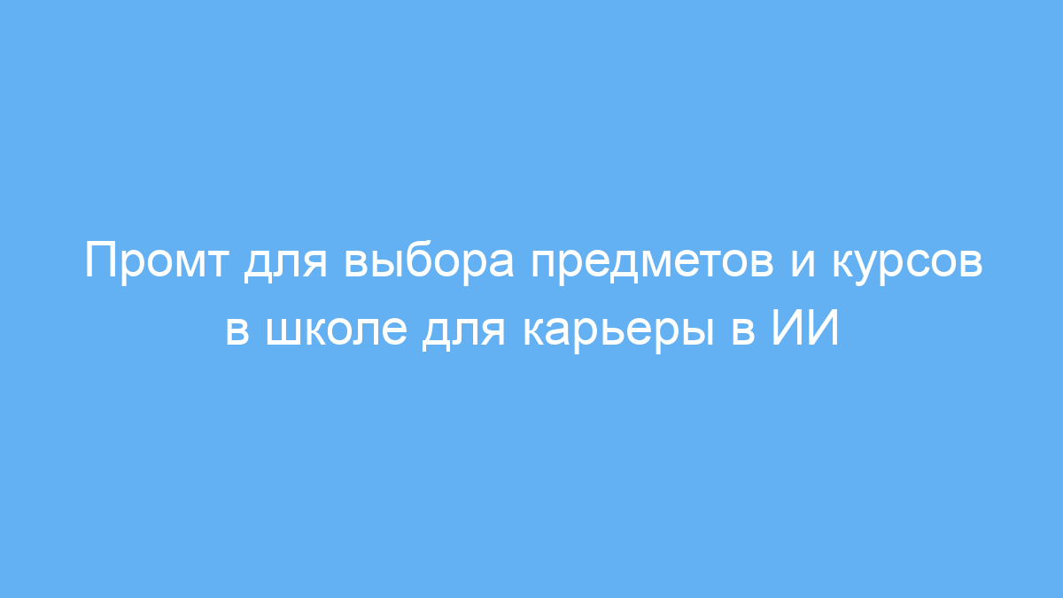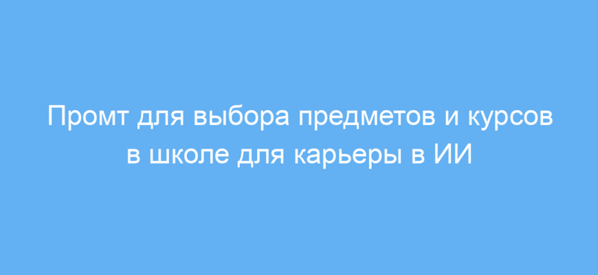 Этот промт предназначен для школьников или их родителей, которые хотят понять, какие предметы и курсы стоит выбрать в старшей школе, чтобы подготовиться к будущей работе или учебе в сфере искусственного интеллекта (ИИ). Часто ученики не знают, на чем лучше сосредоточиться, и промт помогает структурировать этот выбор.
