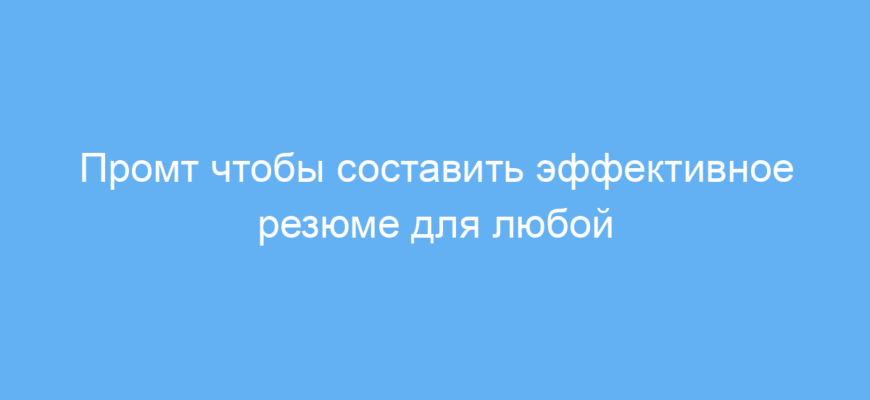 Использование этого промта позволяет быстро создавать качественные и релевантные резюме под любую позицию, учитывая нюансы отрасли и требования работодателя. Он экономит время на корректировку и форматирование, минимизирует ошибки, делает резюме убедительным и лёгким для восприятия.