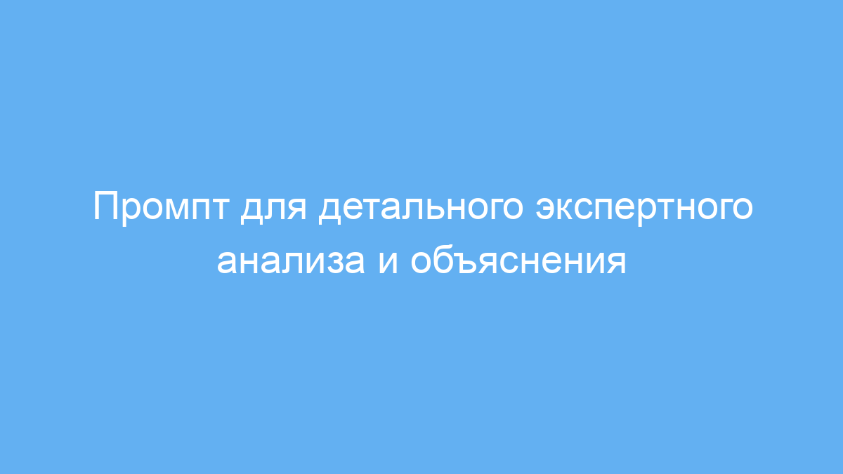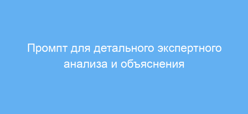 Данный промпт позволяет получать развернутые, экспертные и структурированные ответы, экономя ваше время на поиск и анализ информации. Он помогает глубоко разобраться в сложных вопросах и подходит для учёбы, работы и исследований.