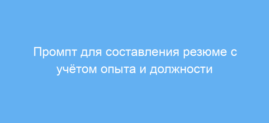 Промпт задаёт последовательные вопросы о личных данных, образовании, желаемой должности, опыте и дополнительных знаниях. После получения полной информации нейросеть формирует резюме, адаптированное под конкретную позицию, учитывая все введённые данные. Результат написан от первого лица и имеет чёткую структуру, что облегчает восприятие работодателем.