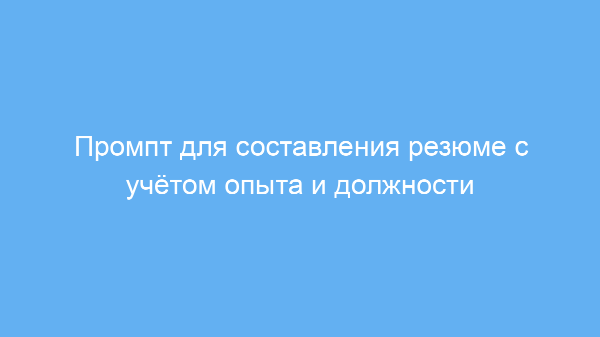 Этот промпт предназначен для тех, кто хочет быстро и качественно составить резюме, адаптированное под конкретную вакансию. Он полезен соискателям различных специальностей, которые хотят представить свой опыт, образование и навыки максимально эффективно. Благодаря этому промпту можно избавиться от сомнений в структуре и содержании резюме, а также учесть требования конкретной должности.