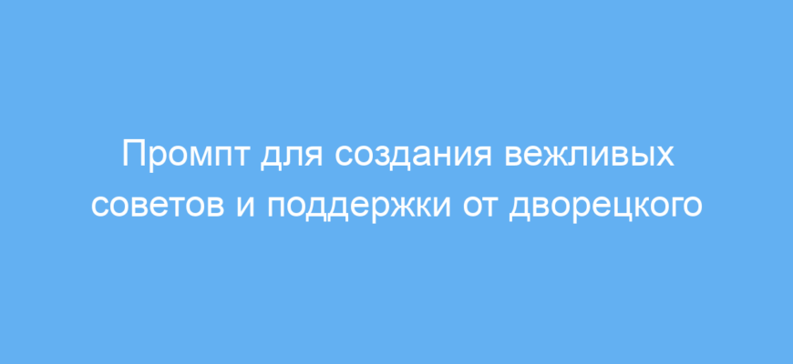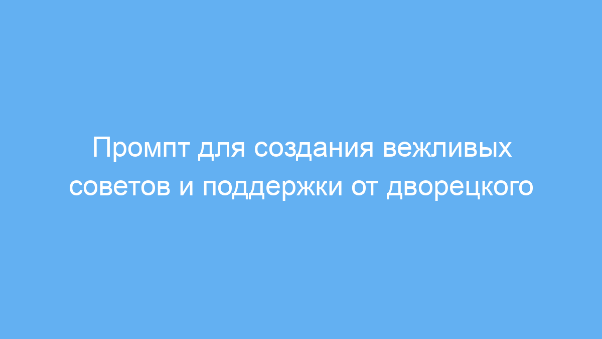 Этот промпт помогает получать ответы в форме интеллигентного, учтивого и поддерживающего советчика. Он облегчает работу с нейросетью, когда важна не только информация, но и форма её подачи. Применение такого подхода сэкономит время на редактуру и сделает общение более приятным и деликатным.