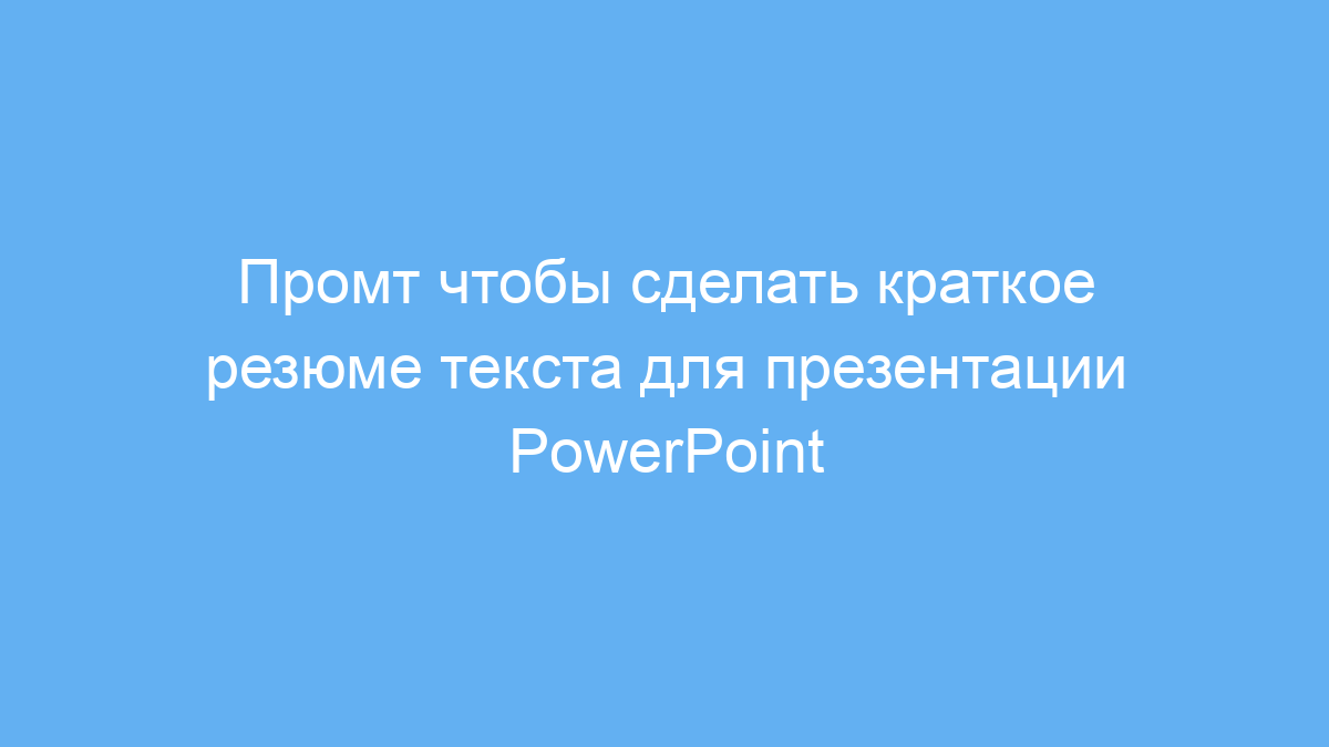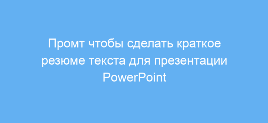 Этот промт предназначен для пользователей, которым нужно быстро и понятно оформить длинный или сложный текст в формате 3-5 коротких пунктов. Его чаще всего используют при подготовке презентаций PowerPoint, чтобы выделить главные мысли и структурировать информацию для аудитории.