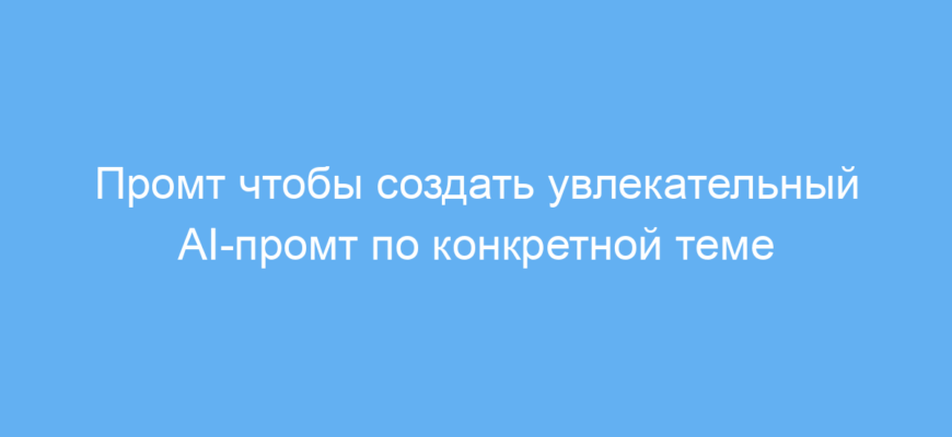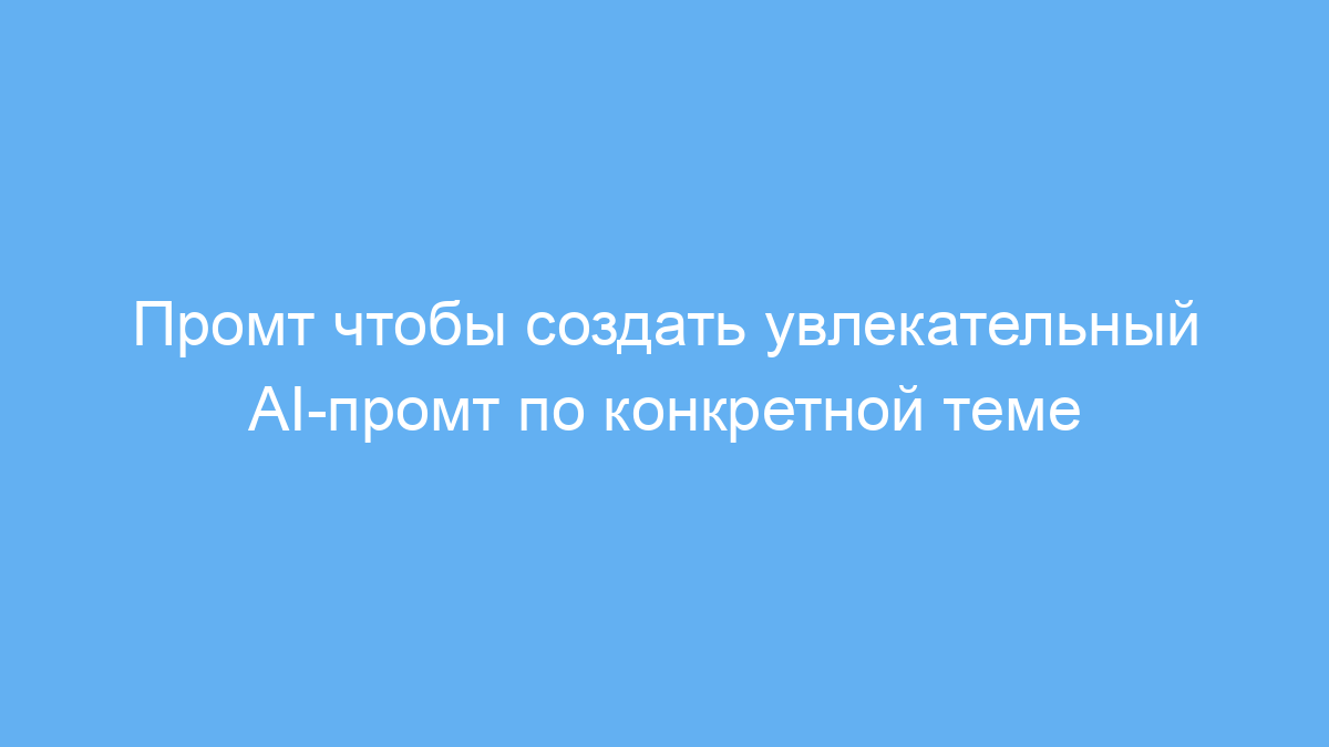 Этот промт позволяет быстро получить четкий и наглядный шаблон для создания AI-промтов по любой теме. Он экономит время, помогает структурировать информацию и делает итоговый запрос понятным как для пользователя, так и для нейросети.