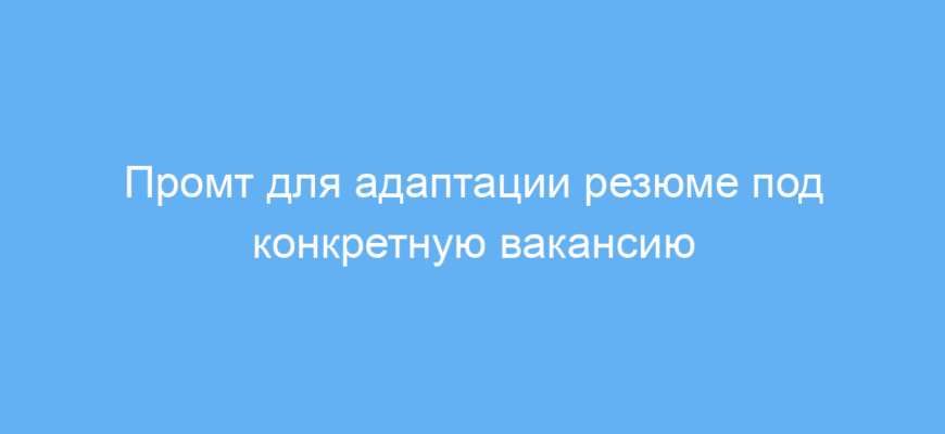 Промт хорошо подходит для адаптации резюме под одну вакансию за раз. Для массовой работы с разными вакансиями удобнее автоматизировать ввод данных и обрабатывать результаты программно.