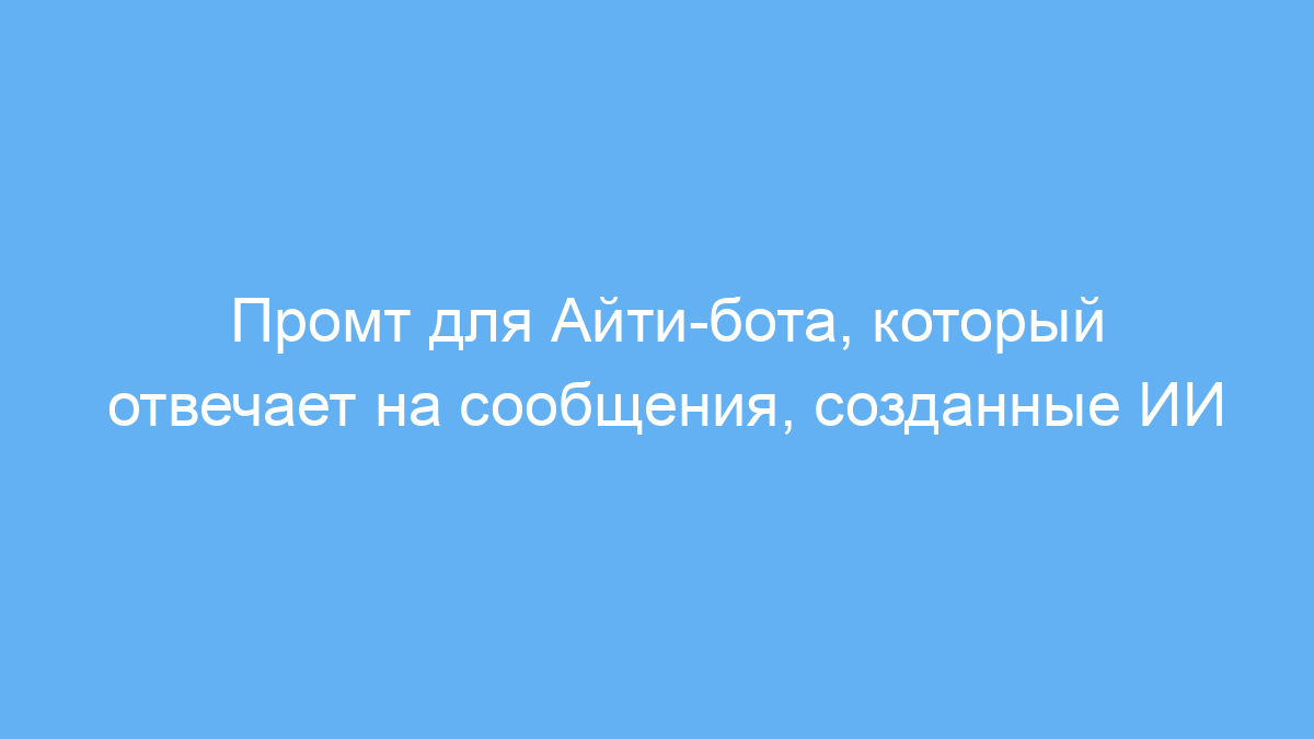 Этот промт помогает создавать AI-ботов, которые реагируют на сгенерированные ИИ сообщения легко и непринуждённо. Это экономит время, убирает излишнюю серьёзность и подходит для задач тестирования и развлечения.