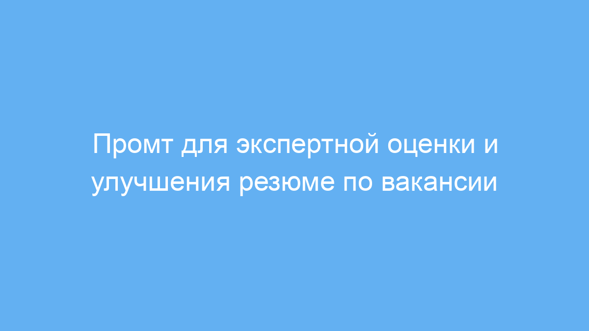 Этот промт лучше использовать для резюме на конкретные вакансии, а не для общих оценок.