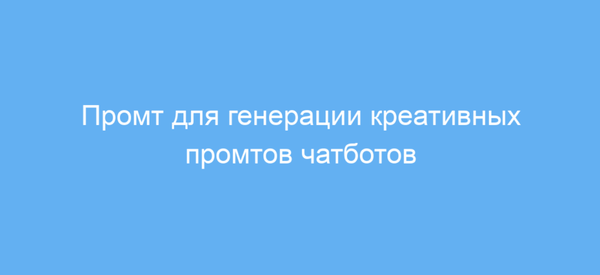 Принцип работы прост: промт задаёт ИИ роль «Генератора Промтов для Чатботов» с уровнем знаний выше экспертного. В этом режиме ИИ генерирует идеи и готовые шаблоны промтов, учитывая цели чатбота, целевую аудиторию и контекст использования. Таким образом, пользователь получает релевантные, креативные и адаптированные под конкретные задачи промты.