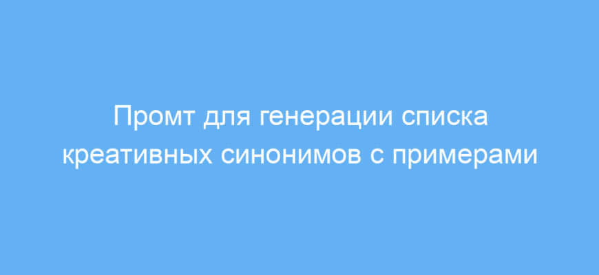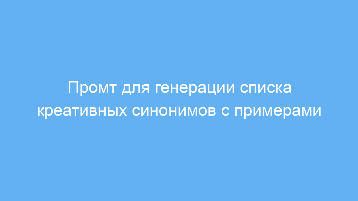 Этот промт экономит время и силы при поиске уникальных и выразительных синонимов. Он облегчает создание ярких и необычных текстов, помогает избегать повторов и расширять словарный запас. Использование такого инструмента подойдет как новичкам, так и профессионалам, которые хотят быстро получить качественный и разнообразный набор слов с примерами.