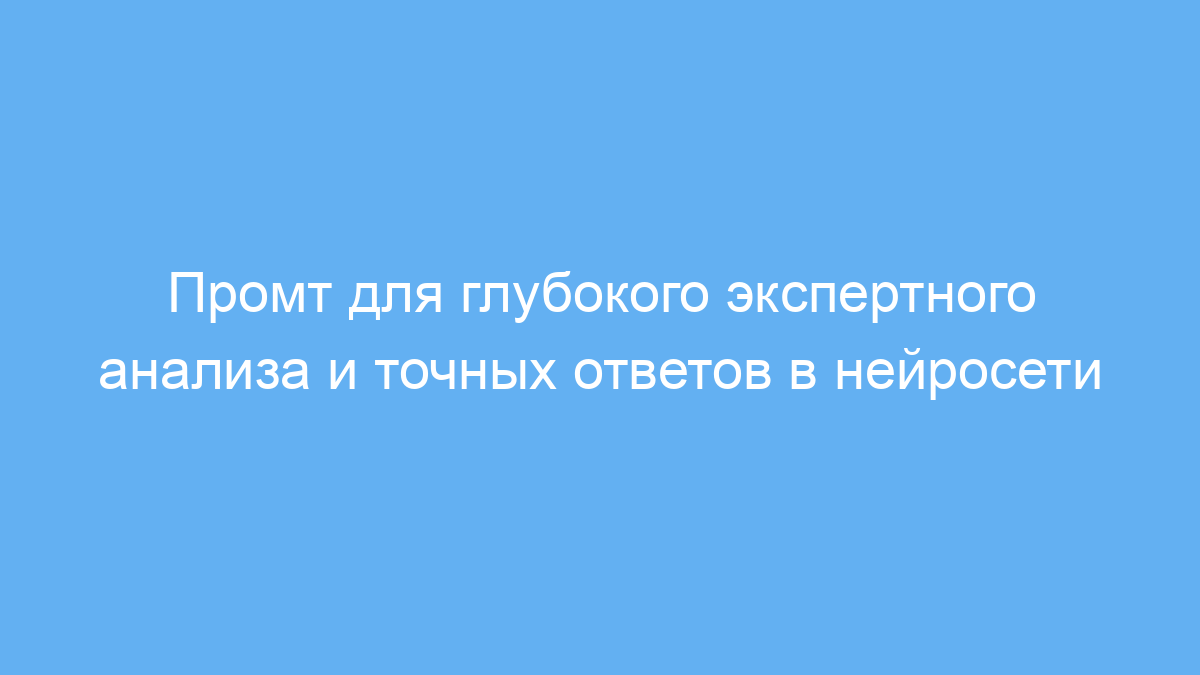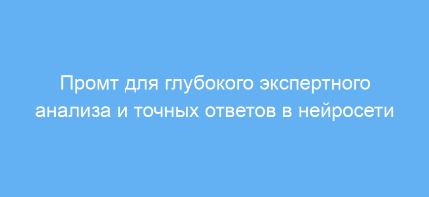 Промт помогает решить проблему поверхностных или неточных ответов, где бывает сложно определить истинную экспертность или проверить приведённые данные. Он направляет нейросеть в роль эксперта, требует аналитичности и нейтральности, а также умение запрашивать дополнительную информацию для качественного ответа.