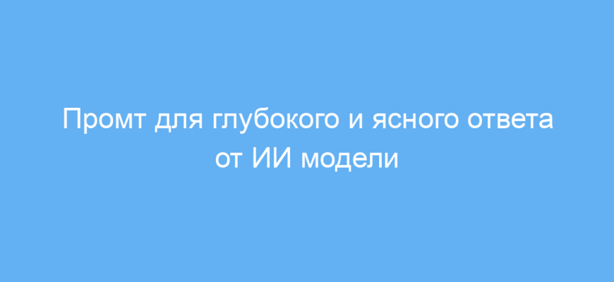 Промт помогает решить проблему поверхностных или запутанных ответов. Он побуждает ИИ давать краткий, но содержательный ответ, учитывая важный контекст, потенциальные заблуждения и последствия изложенного. Благодаря такой структуре ответ становится максимально полезным для обучения, принятия решений или написания качественных текстов.