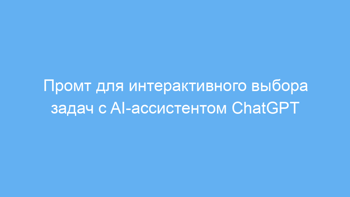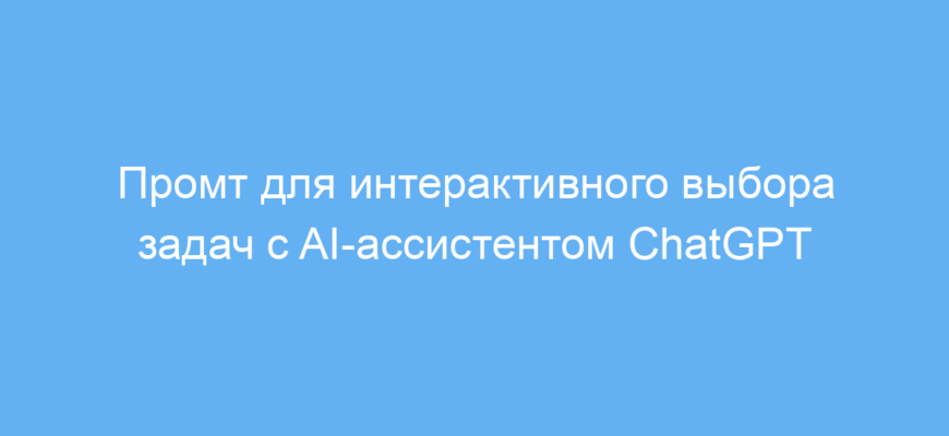 Этот промт предназначен для пользователей, которые хотят эффективно взаимодействовать с AI-ассистентом ChatGPT, получая удобный интерфейс с выбором задач. Он подойдет как специалистам, работающим с нейросетями, так и новичкам, желающим быстро найти нужный способ использования AI в работе или учебе.