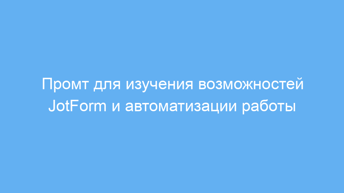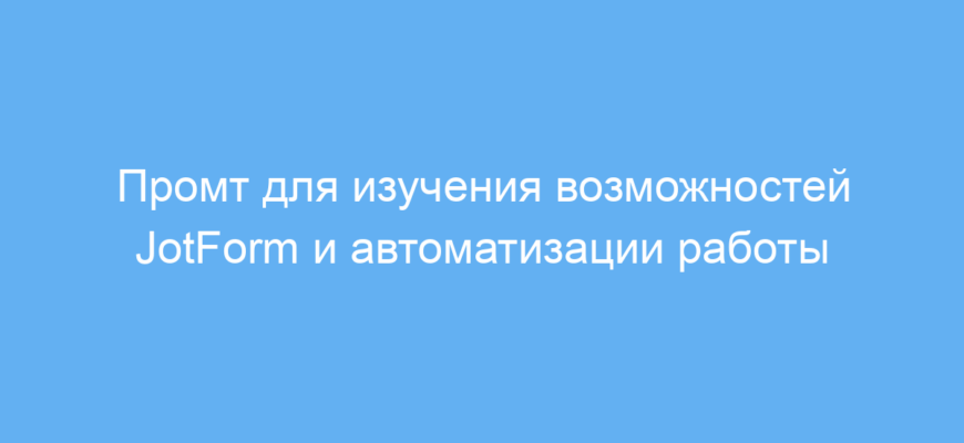 Этот промт рассчитан на пользователей, желающих быстро освоить онлайн-платформу JotForm. Он поможет понять, как создавать удобные формы, собирать данные и автоматизировать процессы без лишних сложностей. Особенно полезен для тех, кто ведёт бизнес, занимается маркетингом, обучением или организацией мероприятий и нуждается в эффективных инструментах для взаимодействия с клиентами и сотрудниками.
