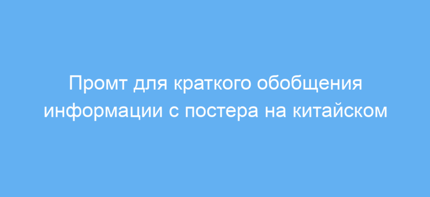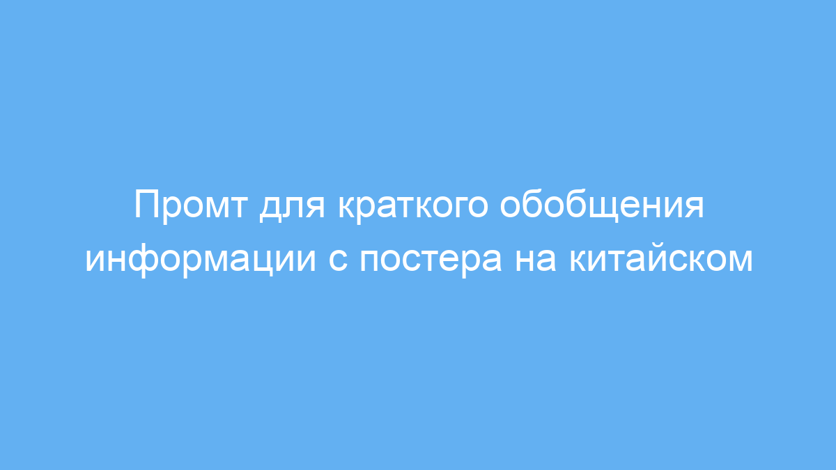 Использование данного промта значительно ускоряет и упрощает процесс получения кратких, но содержательных описаний с китайских постеров. Это экономит время, снижает информационный шум и помогает концентрироваться на главном.