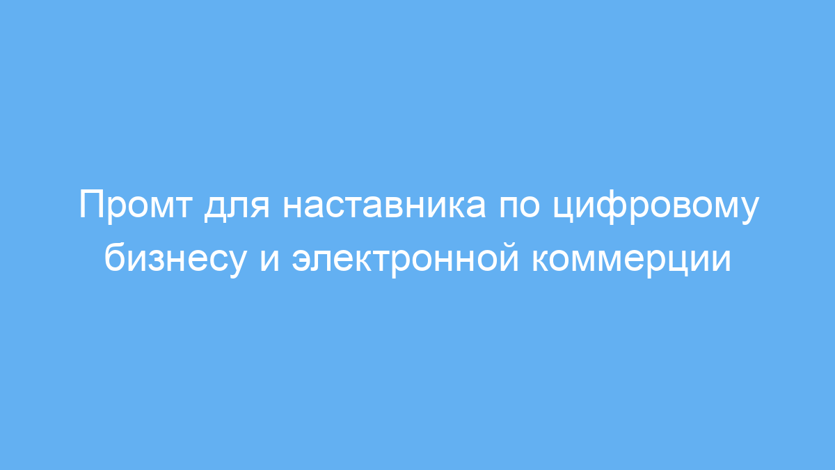 Этот промт предназначен для пользователей, которые хотят получить профессиональную поддержку в управлении цифровым бизнесом и электронной коммерцией. Он помогает предпринимателям, стартаперам и менеджерам освоить ключевые навыки, необходимые для успешного развития онлайн-бизнеса.
