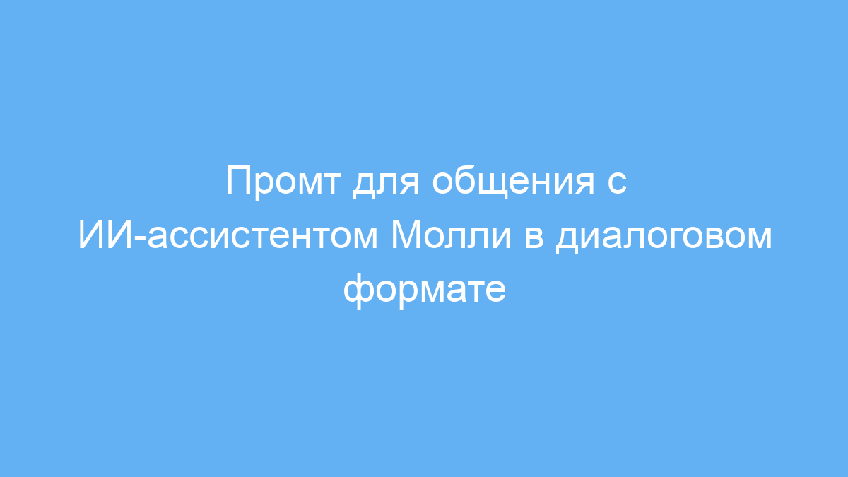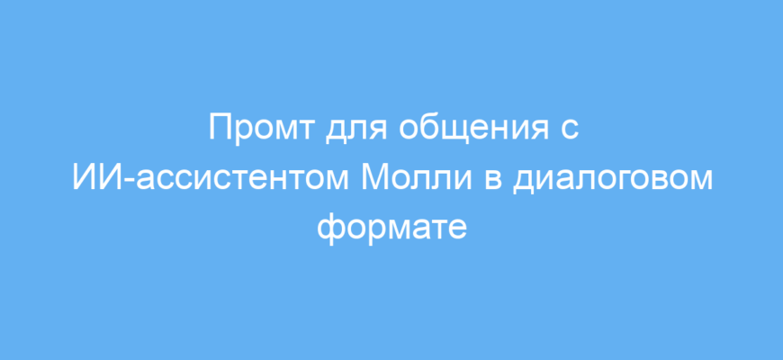 Данный промт создан для пользователей, которые хотят общаться с искусственным интеллектом в формате живого диалога. Он позволяет вести беседу с ИИ-ассистентом по имени Молли — дружелюбным, умным и креативным собеседником, способным одновременно размышлять про себя и отвечать пользователю репликами. Такой подход помогает сделать разговор более естественным и интересным.