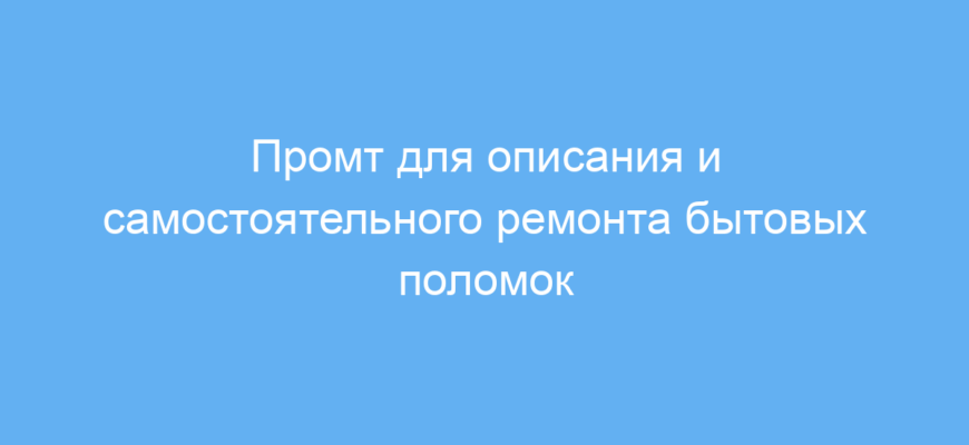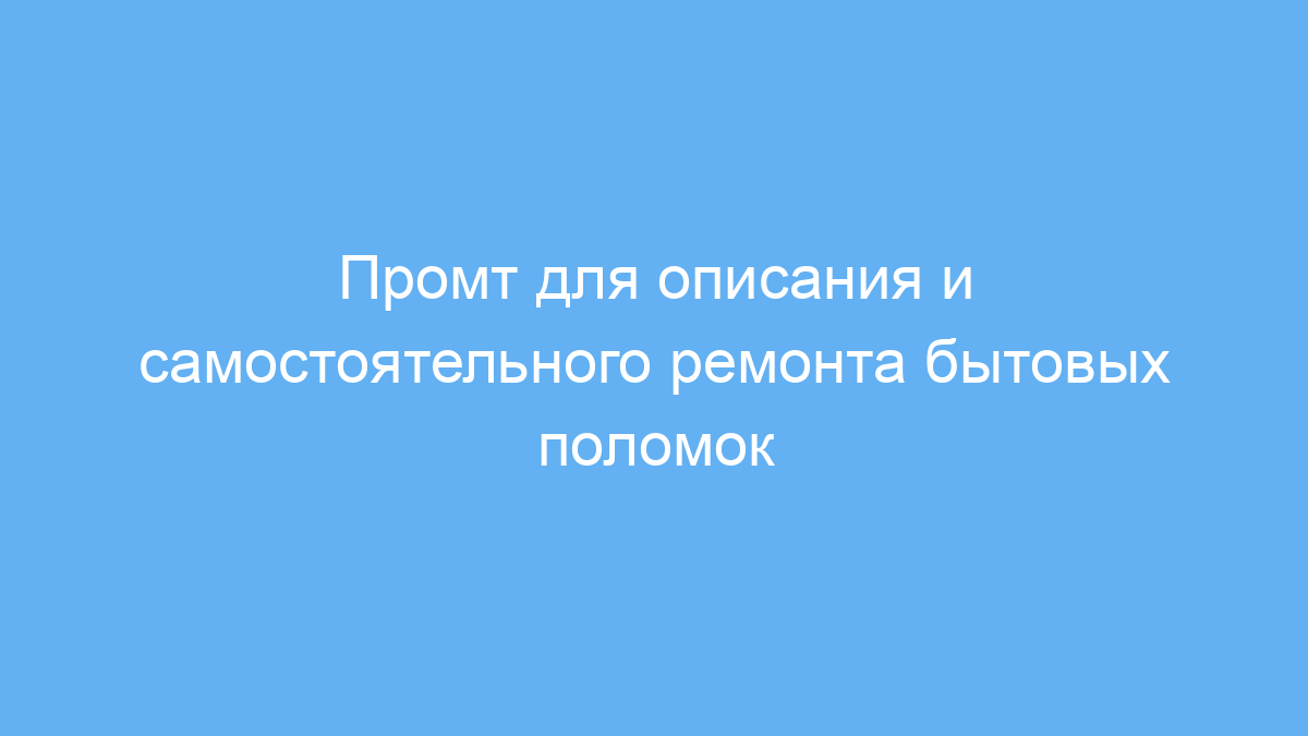 Используйте промт для разных видов ремонта: бытовой техники, сантехники, мелкой электроники или мебели — меняйте параметры согласно вашей ситуации.