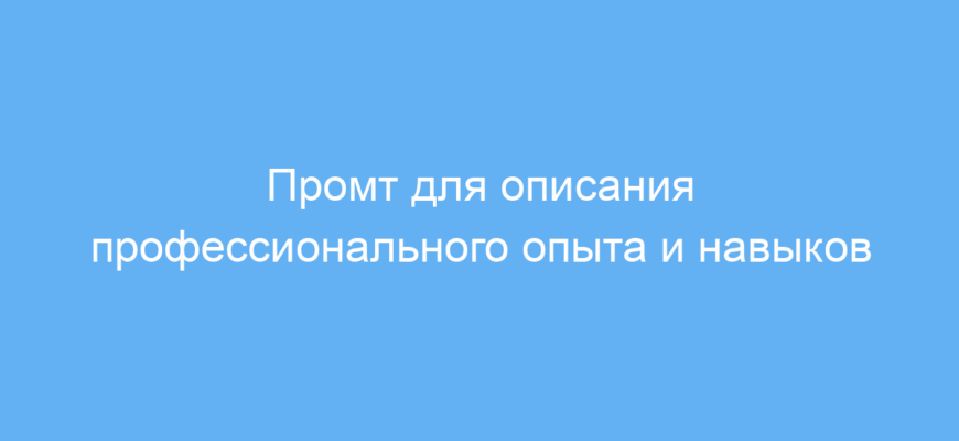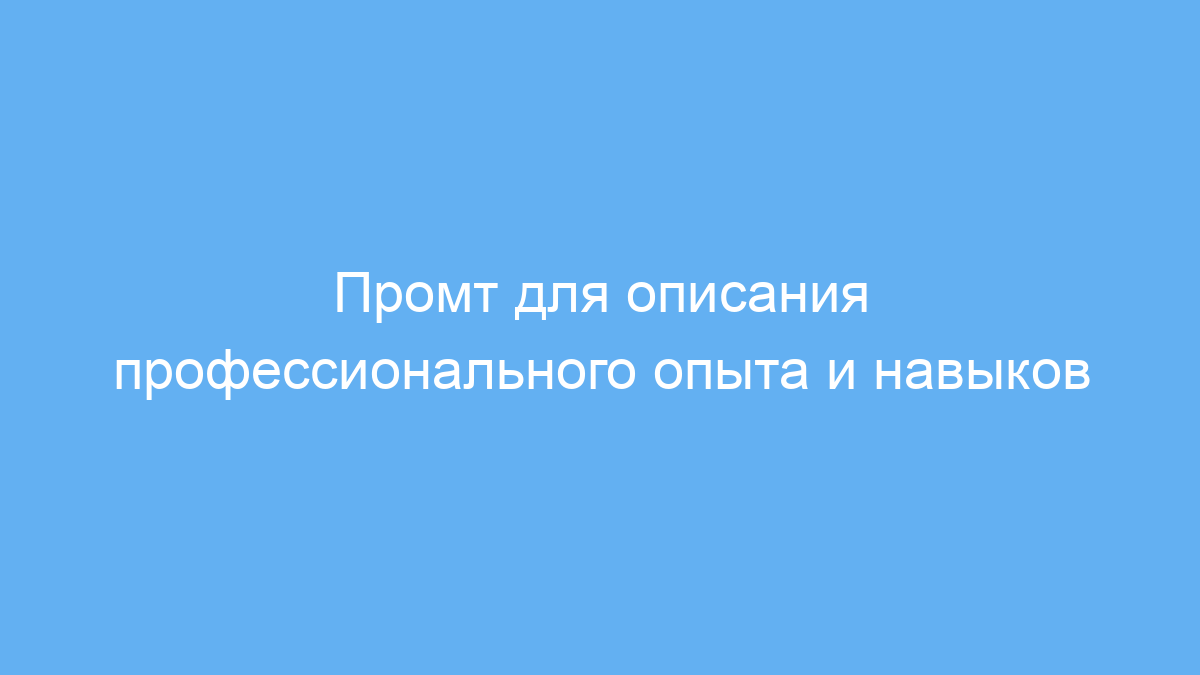 Этот промт облегчает процесс создания профессионального описания, экономит время и помогает получить структурированный, убедительный текст без лишних усилий. Он полезен для резюме, профилей и презентаций, где важно показать квалификацию и опыт в лучшем виде.