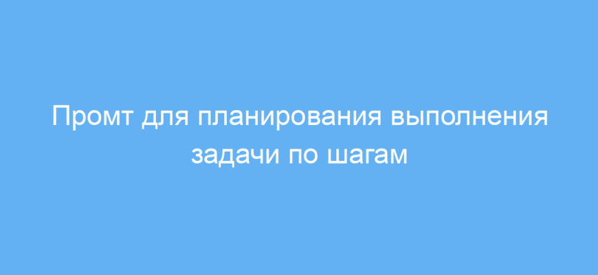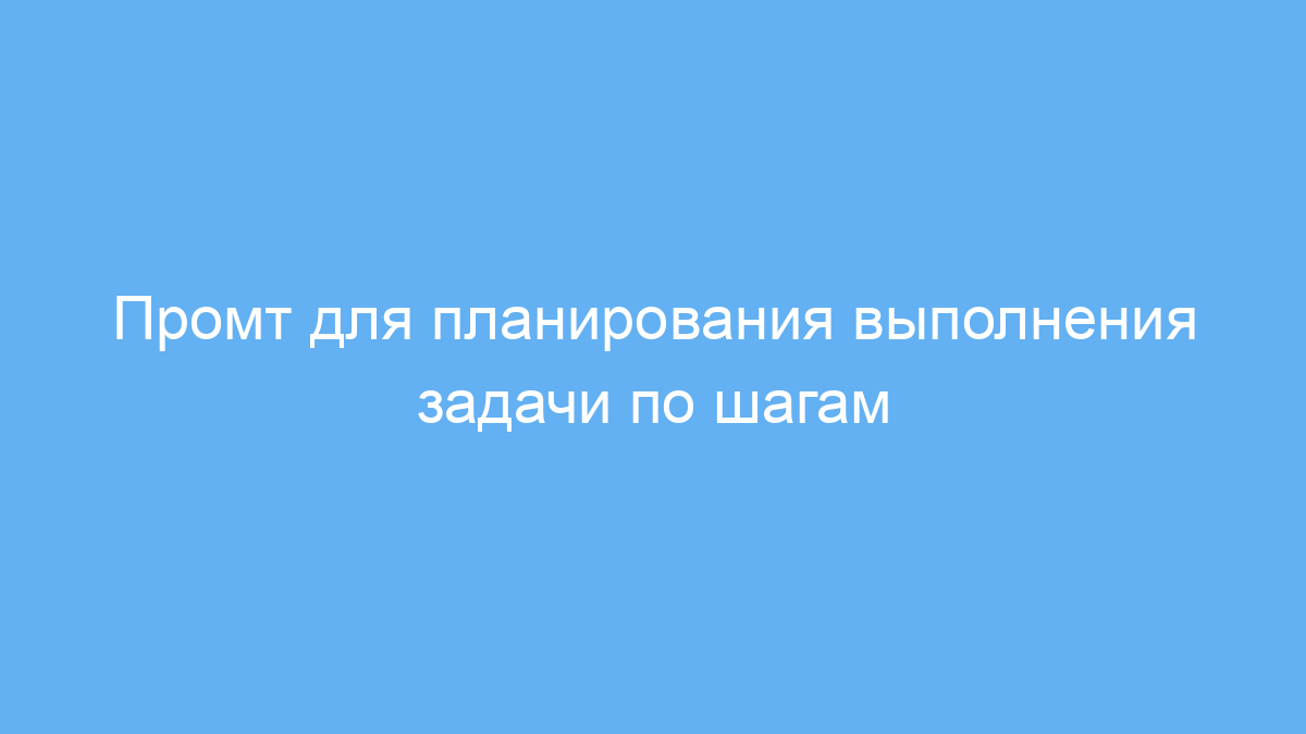 Этот промт создан для тех, кто хочет легко и понятно распланировать выполнение любой задачи или проекта. Он помогает разбить цель на конкретные шаги, что особенно полезно для работы, учёбы или личных дел. Если вы не знаете, с чего начать или как структурировать процесс, этот промт обеспечит чёткий план действий.