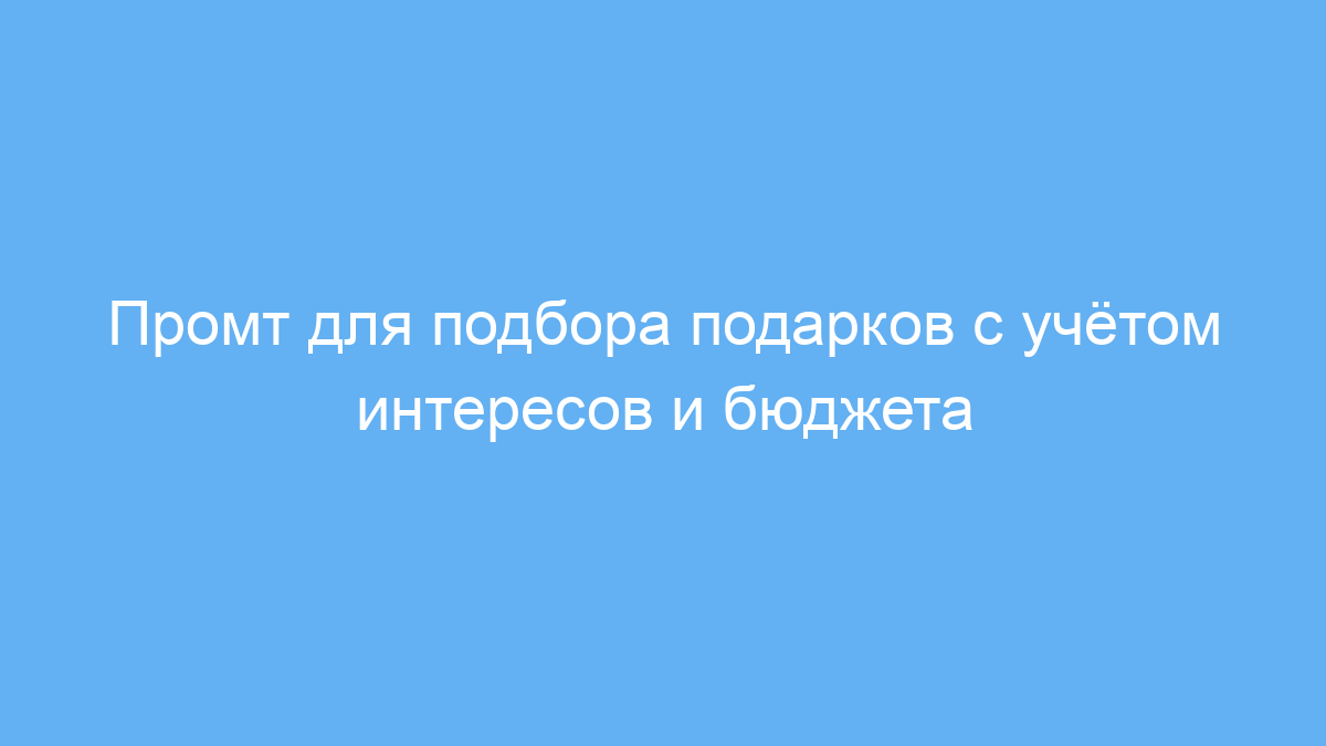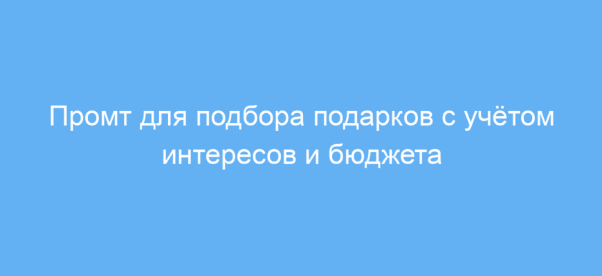 Использование этого промта позволяет быстро получить персонализированные идеи подарков, учитывая реальные интересы и финансовые возможности. Это экономит время и избавляет от сомнений, делая процесс выбора подарка лёгким и приятным.