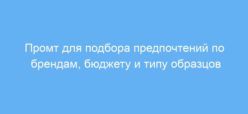 Работает промт так: нейросеть задаёт по одному вопросу в каждом ответе, ожидая на них ответы. Сначала спрашивает о предпочтительных брендах, затем уточняет бюджет, а в финале интересуется типом образцов. Такой подход помогает глубже понять запрос и быстрее сделать качественный выбор.