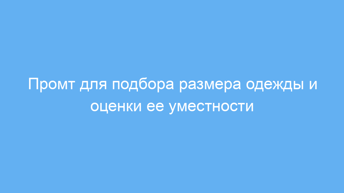 Этот промт создавался для тех, кто хочет быстро и точно определить подходящий размер одежды и понять, подходит ли выбранный товар для конкретного события. Он поможет людям, которые покупают одежду онлайн или не уверены, какой размер выбрать, а также предоставит оценку уместности образа для разных поводов.