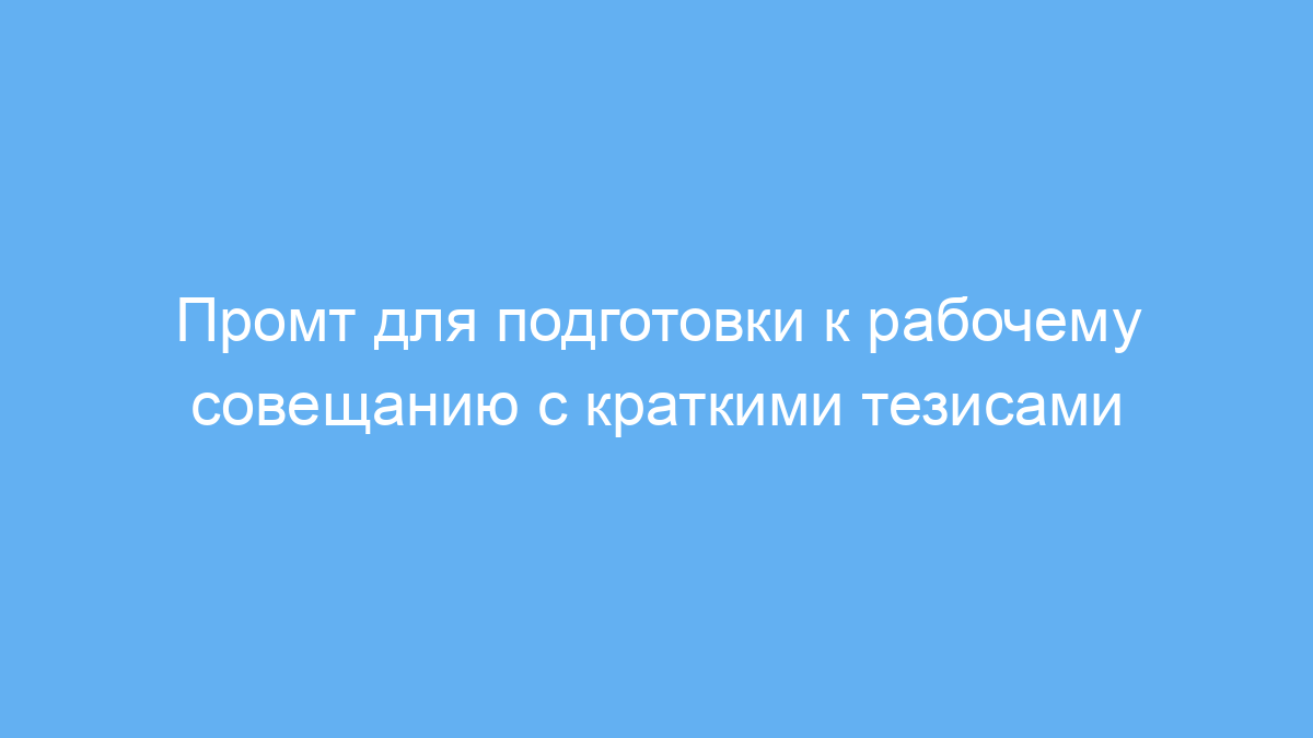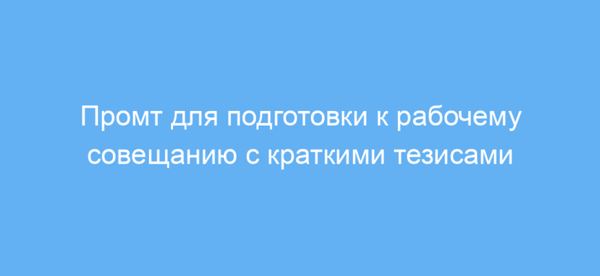 Промт решает проблему медленной подготовки, облегчает структурирование информации и помогает держать в голове ключевые моменты для обсуждения. Он позволяет пользователю вводить вопросы или темы, на которые нейросеть отвечает короткими пунктами — так, чтобы было удобно оперировать тезисами в диалоге или презентации.