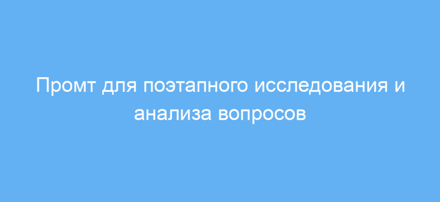 Этот промт позволяет поэтапно и структурировано исследовать любые сложные вопросы, обеспечивая логичный ход анализа и формирование комплексного итога. Он экономит время, помогает глубже понять проблему и принимать обоснованные решения.