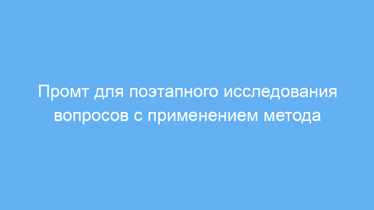 Этот промт помогает глубоко и структурировано изучать сложные вопросы. Он экономит время, разбивая задачу на понятные этапы и создавая логическую цепочку рассуждений. Благодаря этому пользователь получает более полное и продуманное понимание темы, вместо поверхностного ответа.