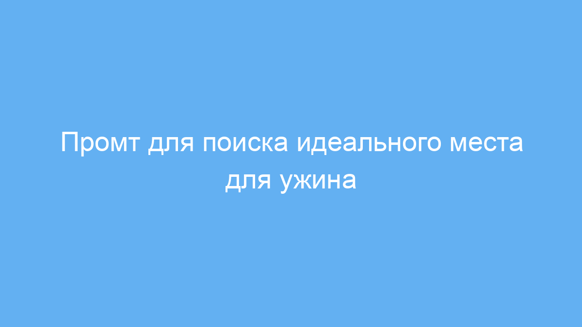 Использование этого промта поможет легко и быстро найти подходящий ресторан или место для ужина, учитывая все ключевые параметры – от бюджета до особенностей меню и дополнительных условий. Это сократит время на поиски и повысит качество выбора.