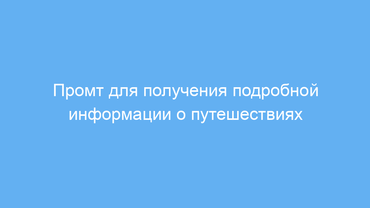 Этот промт экономит ваше время и усилия на поиске информации, предоставляя полные и структурированные рекомендации под ваши даты и место путешествия. Он помогает подготовиться к поездке с учётом безопасности, интересов и комфорта, что делает путешествие более приятным и организованным.