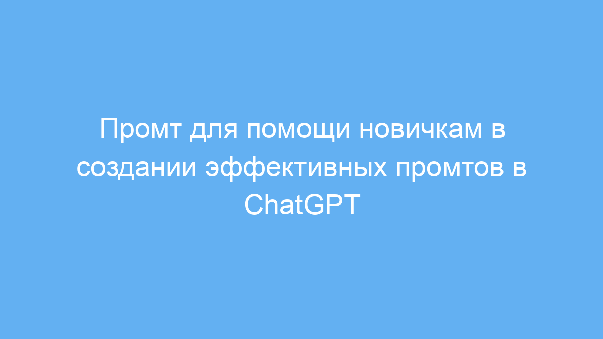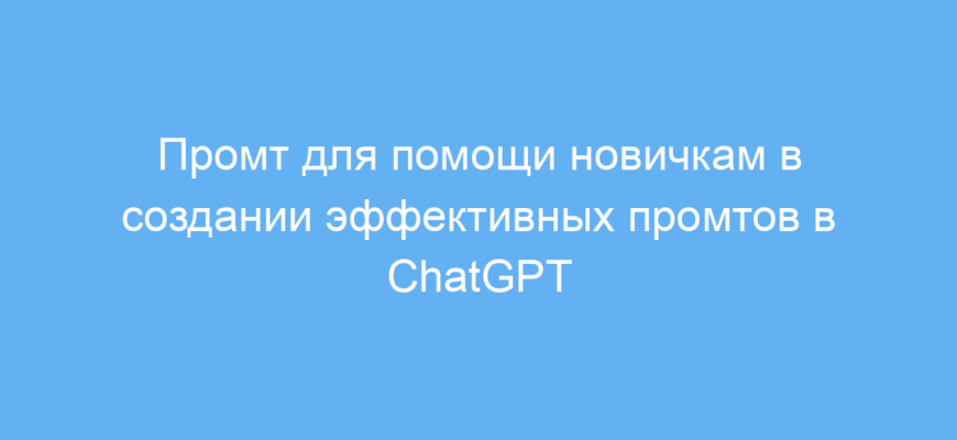 Этот промт предназначен для новичков, которые только начинают использовать ChatGPT или другие нейронные сети. Часто у новых пользователей возникают сложности с формулировкой правильных промтов — вопросов или заданий, которые нейронная сеть понимает и на которые она даёт точные и полезные ответы. Основная задача промта — помочь таким новичкам пошагово создавать чёткие и результативные промты, задавая уточняющие вопросы для более полного понимания задачи. Это ускоряет обучение и повышает качество итоговых ответов.