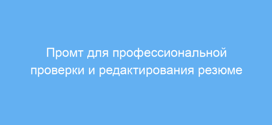 Этот промт предназначен для соискателей, HR-специалистов и карьерных консультантов, которые хотят улучшить свое резюме. С его помощью можно выявить опечатки, грамматические ошибки и проблемы с форматированием. Также он даёт рекомендации по структуре и содержанию, чтобы сделать резюме более понятным и эффективным.