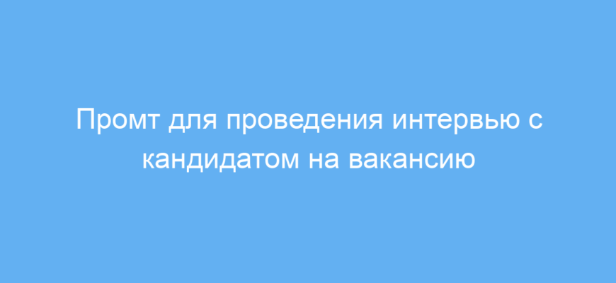 Этот промт создан для тех, кто хочет смоделировать собеседование на определённую должность с помощью нейросети. Он полезен для HR-специалистов, рекрутеров, преподавателей и всех, кто готовится к собеседованиям или хочет практиковаться в вопросах интервью. Основная задача промта — помогать пользователю отрабатывать диалог в формате вопросов и ответов, чтобы улучшить навыки общения и подготовиться к реальному интервью.