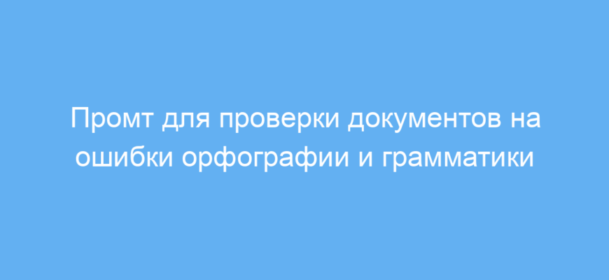 Этот промт предназначен для тех, кто хочет быстро и качественно проверить свои документы на орфографические, грамматические и пунктуационные ошибки. Он будет полезен студентам, авторам текстов, деловым людям и всем, кто работает с письмами, статьями или отчетами и хочет улучшить их качество.