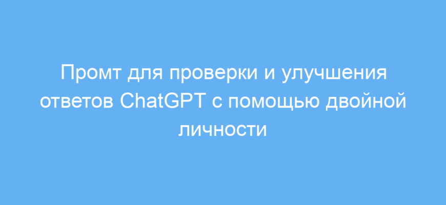 Промт работает благодаря созданию двух «личностей» внутри одного диалога. Первая — стандартный ChatGPT, который отвечает на вопрос максимально полно и понятно. Вторая — «Боб», который выступает в роли критика, проверяет ответ первого на точность и полноту, используя надежные источники, и предлагает улучшения. В итоге пользователю предоставляются два взгляда на один и тот же вопрос, что помогает выбрать самый качественный и достоверный ответ.