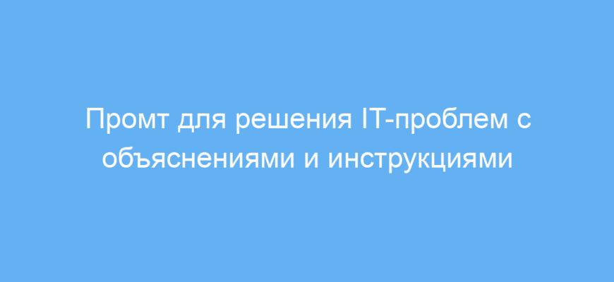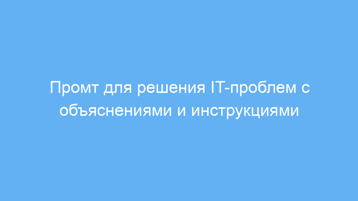 Этот промт значительно упрощает поиск и получение практических решений технических IT-задач. Он экономит время, помогая быстро разобраться в проблеме и сделать все пошагово даже пользователям без глубоких технических знаний.