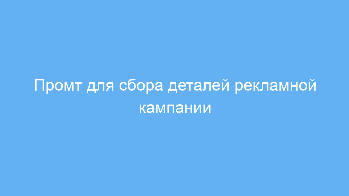 Этот промт создан для тех, кто занимается созданием рекламных кампаний и хочет быстро получить от пользователя ключевую информацию. Он помогает собрать важные данные о бюджете, критериях успеха и целевой аудитории. Использование такого запроса экономит время и упрощает коммуникацию с клиентом или коллегами.