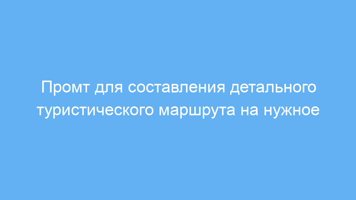 - При необходимости можно добавить дополнительные пожелания (например, интересы, бюджет) для более персонализированного маршрута, дополнив промт.