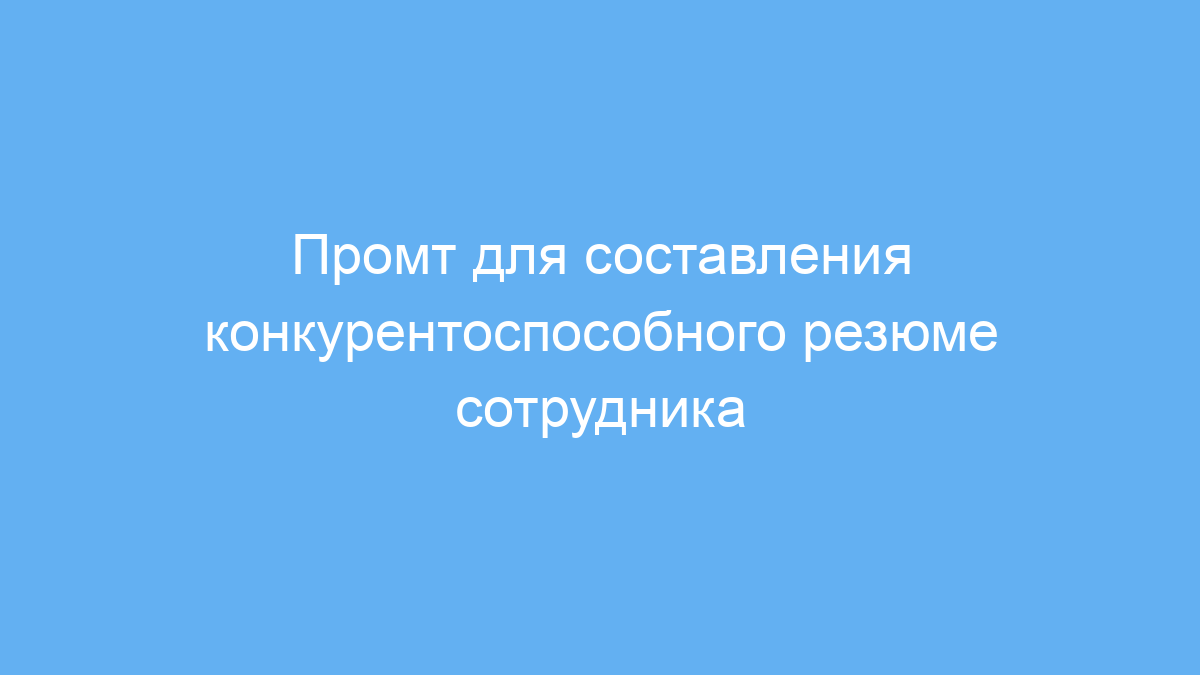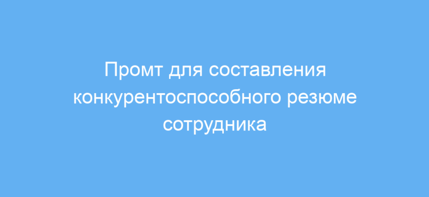 Промт решает проблему многих соискателей, которые затрудняются правильно выразить свои навыки, опыт и требования по работе в резюме. Создавая текст с помощью нейросети, можно получить чёткое, убедительное и конкурентоспособное резюме без лишних усилий.