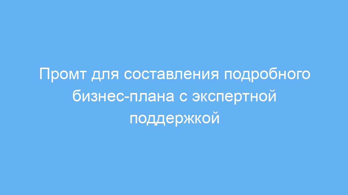 Этот промт экономит время и силы на сбор информации и структурирование бизнес-плана. Он помогает взять во внимание все важные аспекты — от целей до нормативных требований — учитывая ваш опыт и особенности рынка. В итоге вы получаете подробный, реалистичный документ, который поможет грамотно стартовать и развивать бизнес.