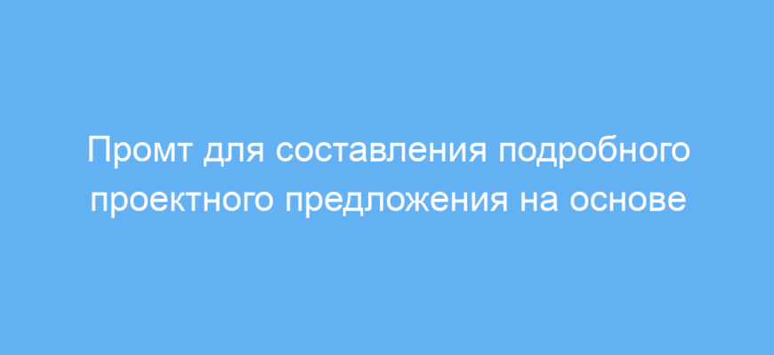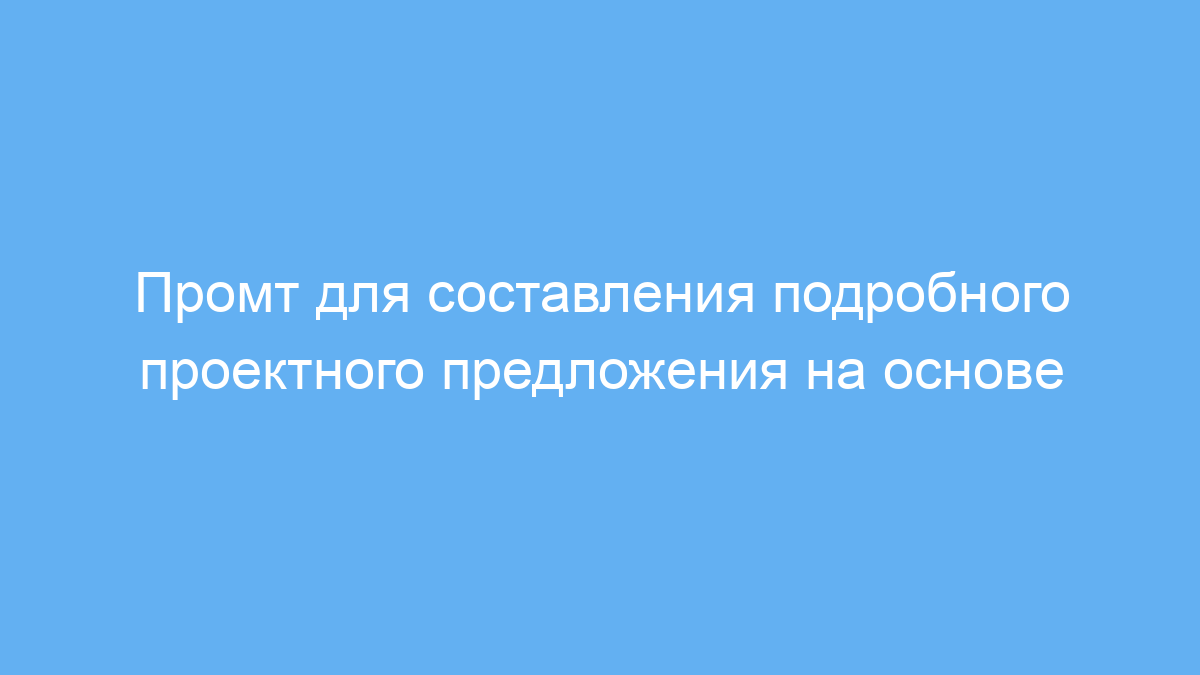 Этот промт значительно упрощает и ускоряет процесс подготовки комплексного проектного предложения. Он помогает избавиться от хаотичности и неполноты информации, создает чёткую структуру, понятную для любого заинтересованного лица. Благодаря этому можно быстро получать понятный и профессиональный документ, который легко доработать под конкретные нужды.