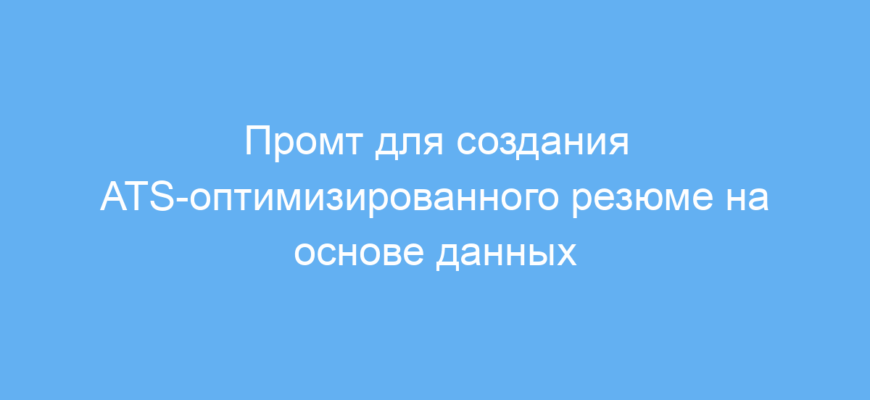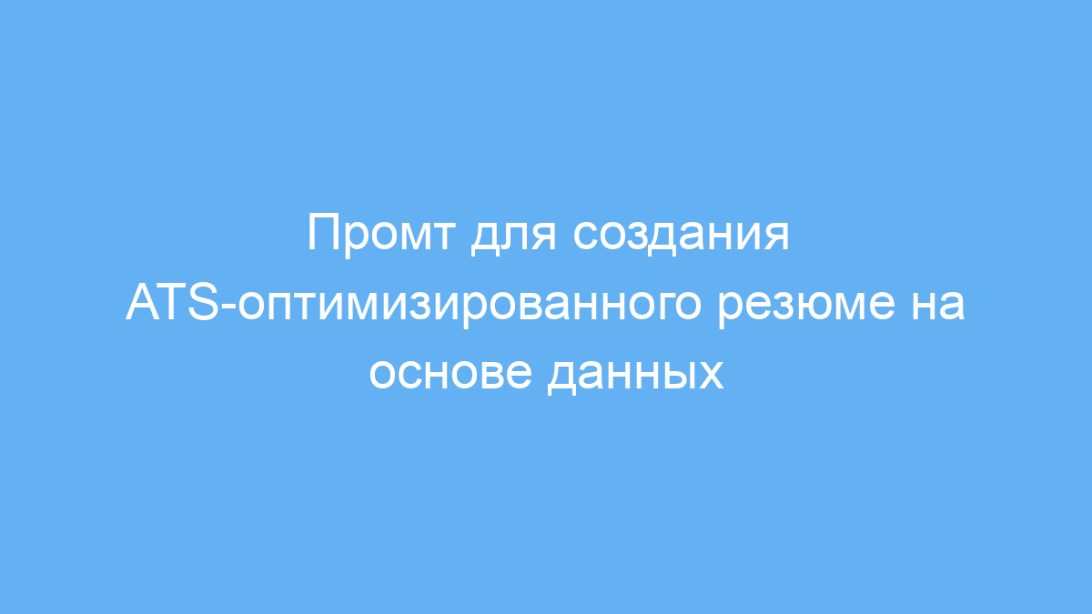Этот промт предназначен для HR-специалистов, рекрутеров, соискателей и карьерных консультантов, которые хотят быстро создать резюме, максимально адаптированное под ATS (системы отслеживания кандидатов). Такие системы используются работодателями для автоматического сканирования, сортировки и фильтрации резюме на основе ключевых слов и структуры. Применение данного промта позволяет получить готовый, стандартизированный и понятный как для программ, так и для людей вариант резюме.