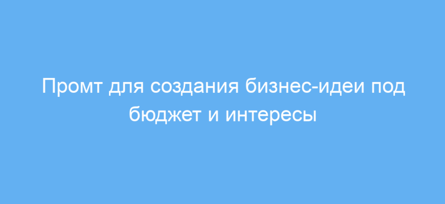 С помощью промта вы сможете быстро сформировать реалистичный и адаптированный к своим условиям бизнес-план. Это особенно полезно начинающим предпринимателям, которым нужна помощь в выборе направления, оценке рисков и планировании затрат.