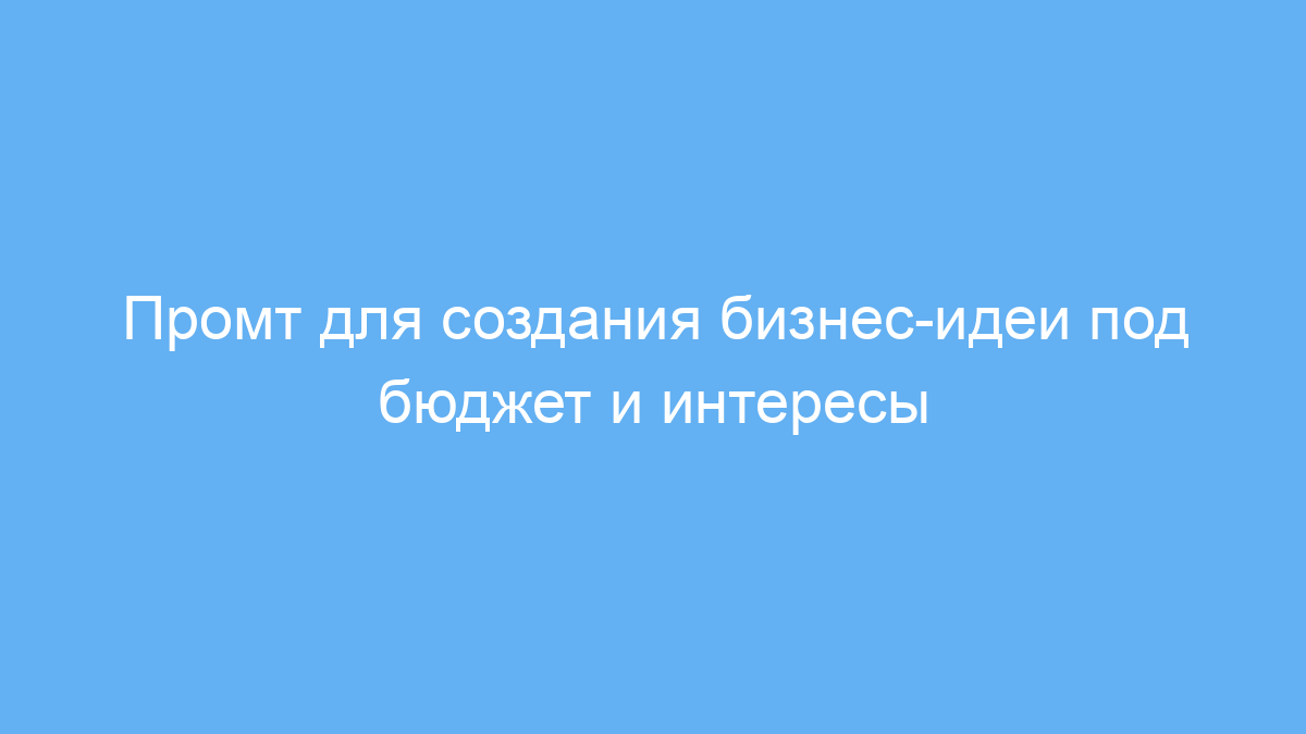Этот промт предназначен для людей, которые хотят открыть свой бизнес, но не знают, с чего начать или как подобрать идею, учитывая свои финансовые возможности и интересы. Он помогает структурировано и поэтапно определить подходящую бизнес-идею, анализируя бюджет, цели и целевую аудиторию пользователя.