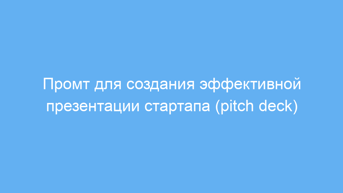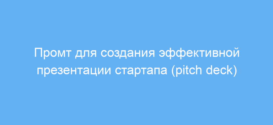 Данный промт существенно упрощает процесс создания качественного и структурированного pitch deck. Он помогает не упустить важные аспекты проекта и готовит презентацию к привлечению инвестиций быстрее и эффективнее.